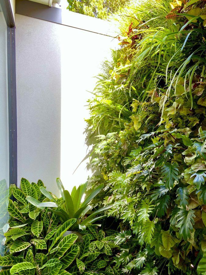 This was a new home build with two vertical gardens. The impact and lushness of these feature green walls has been loved by family and guests.